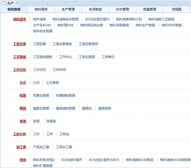 5、什么是制造数据?制造数据包括物料清单BOM、工艺路线、物料扩展信息、工作中心、工序、机器、模具、工种、工厂日历及其它与计划、生产、成本分摊有关的基础信息。制造数据是编制生产、采购、外协、配套领料、工序调度、工序投入产出、跟踪物流及生产过程、计算成本、改进产品设计等都需要参照的重要文件。 制造数据如同一个管理枢纽,把企业各个业务部门通过物料有机地联系在一起。因此,几乎企业所有主要业务部门都要使用,并依据统一的制造数据进行工作。 包括: