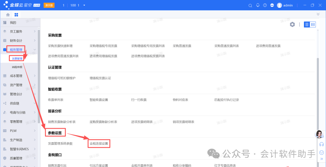 一、获取税盘信息 1、首先需要在开票电脑上插上税盘,启动发票云组件; 2、然后点击获取金税盘信息; (1)操作路径:税务管理→发票管理→参数设置→金税连接设置;