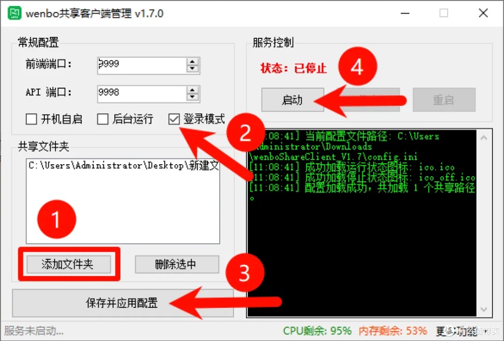 免安装,开箱即用:解压后双击 wenboShareClient 即可启动。