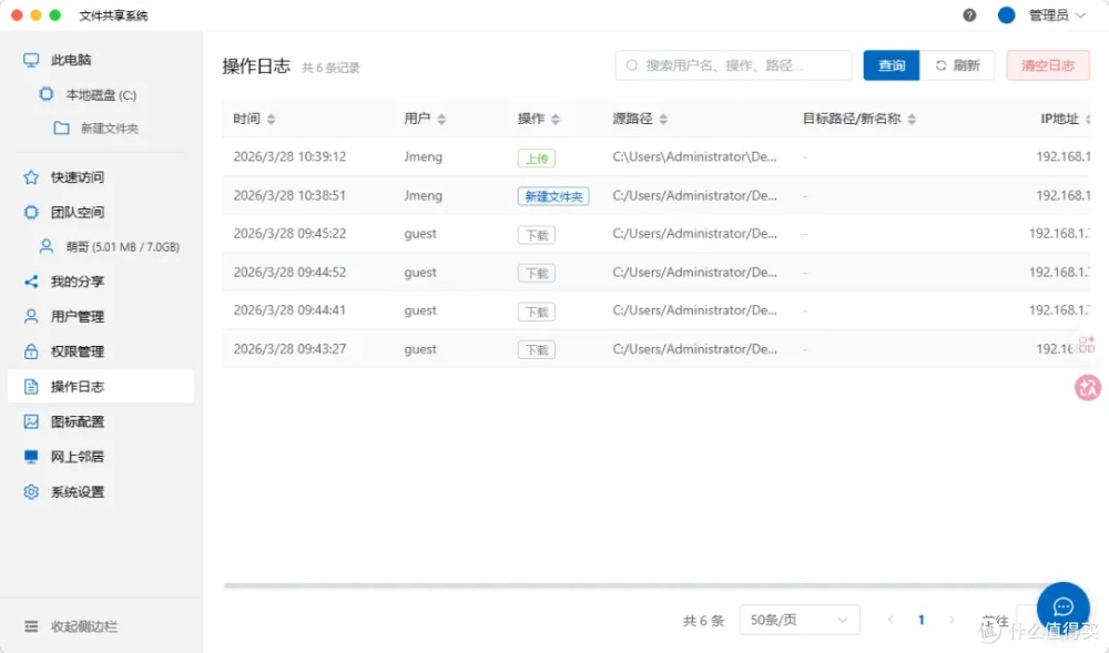 今天分享一款专业级局域网文件共享工具,由吾爱大佬@drawfans开发。无需NAS,零成本搭建企业级文件服务器——支持实时同步、权限分级、操作监控、团队空间、在线聊天,手机电脑全平台访问,小公司办公神器!