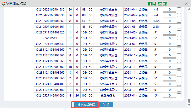 点击选择对应的入库单信息,然后再点击“出库”按钮