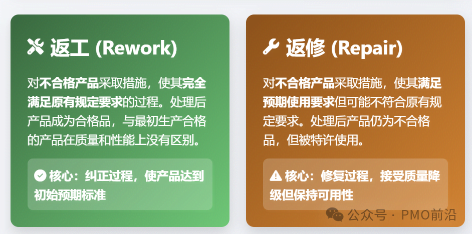 很多人分不清返工和返修?生产中遇到不合格品,到底该返工补救还是返修放行?两者不仅处理方式天差地别,对成本、交付和客户关系的影响更是千差万别。看完这篇,让你在质量管控中不再踩坑,轻松拿捏取舍之道!详细说明1返工(Rework)定义:对不合格产品所采取的措施,使其完全满足原有的规定要求(即图纸、标准、规范)。核心:返工过程...